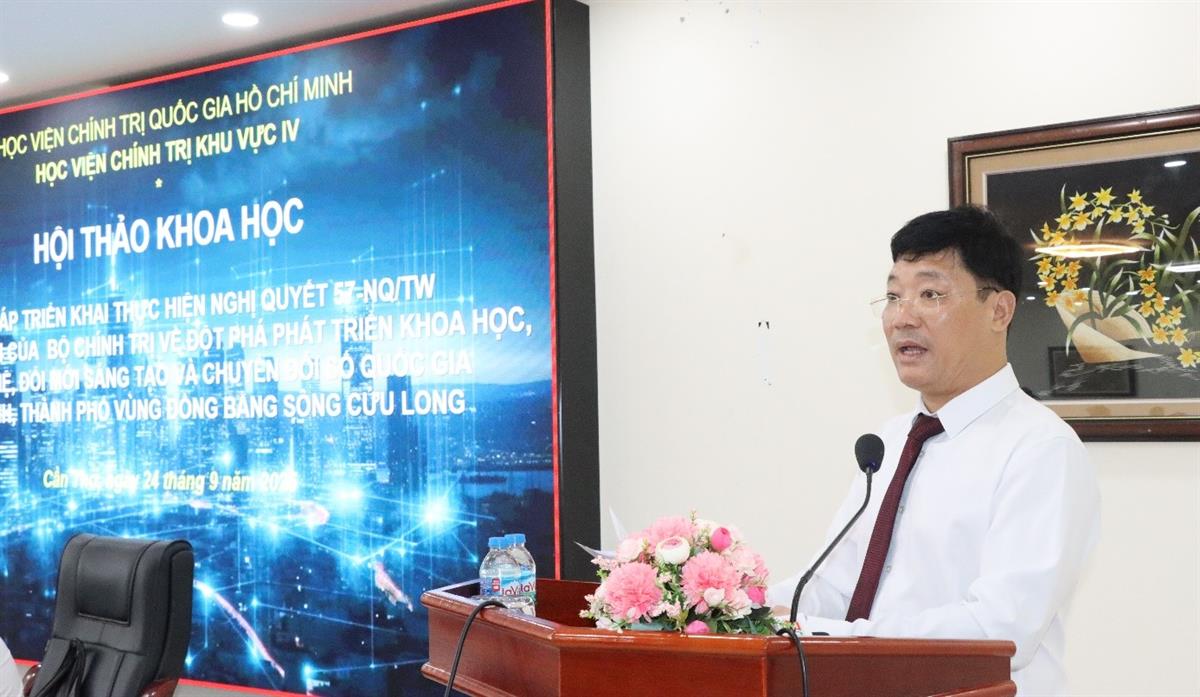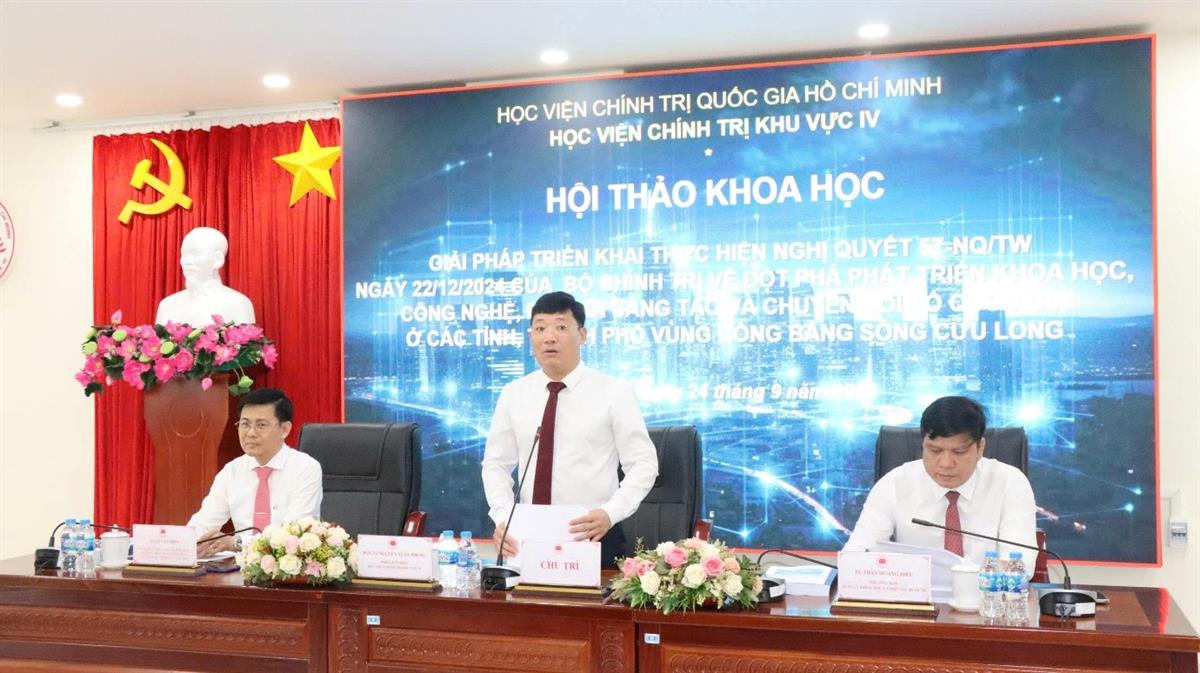 (HCMA4) - Sáng ngày 24/9/2025, tại thành phố Cần Thơ, Học viện Chính trị khu vực IV tổ chức Hội thảo khoa học với chủ đề “Giải pháp triển khai thực hiện Nghị quyết 57-NQ/TWngày 22/12/2024 của Bộ Chính trị về đột phá phát triển khoa học, công nghệ, đổi mới sáng tạo và chuyển đổi số quốc gia ở các tỉnh, thành phố vùng đồng bằng sông Cửu Long”.