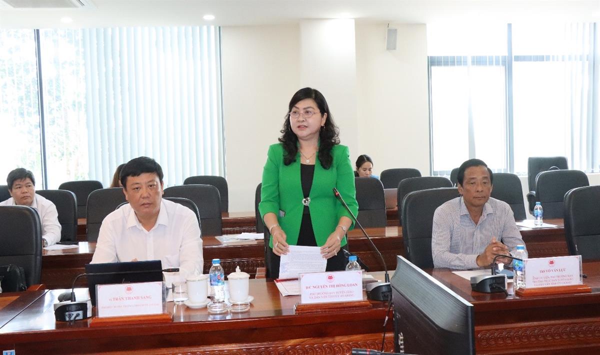 Đại biểu Nguyễn Thị Hồng Loan – Phó Trưởng ban Tuyên giáo và Dân vận Tỉnh ủy An Giang phát biểu tại hội thảo