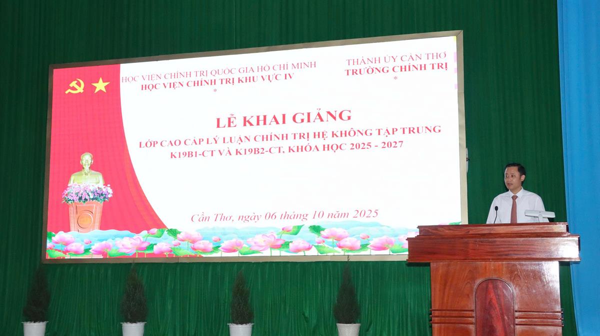 Dự Lễ khai giảng có PGS, TS. Ngô Tuấn Nghĩa, Bí thư Đảng ủy, Giám đốc Học viện Chính trị khu vực IV; đồng chí Trần Văn Huyến, Phó Bí thư Thành ủy Cần Thơ; lãnh đạo Trường Chính trị, Ban Tổ chức Thành ủy, Sở Nội vụ thành phố Cần Thơ cùng học viên của hai lớp.