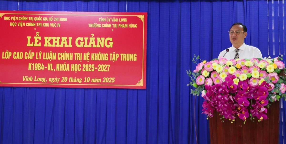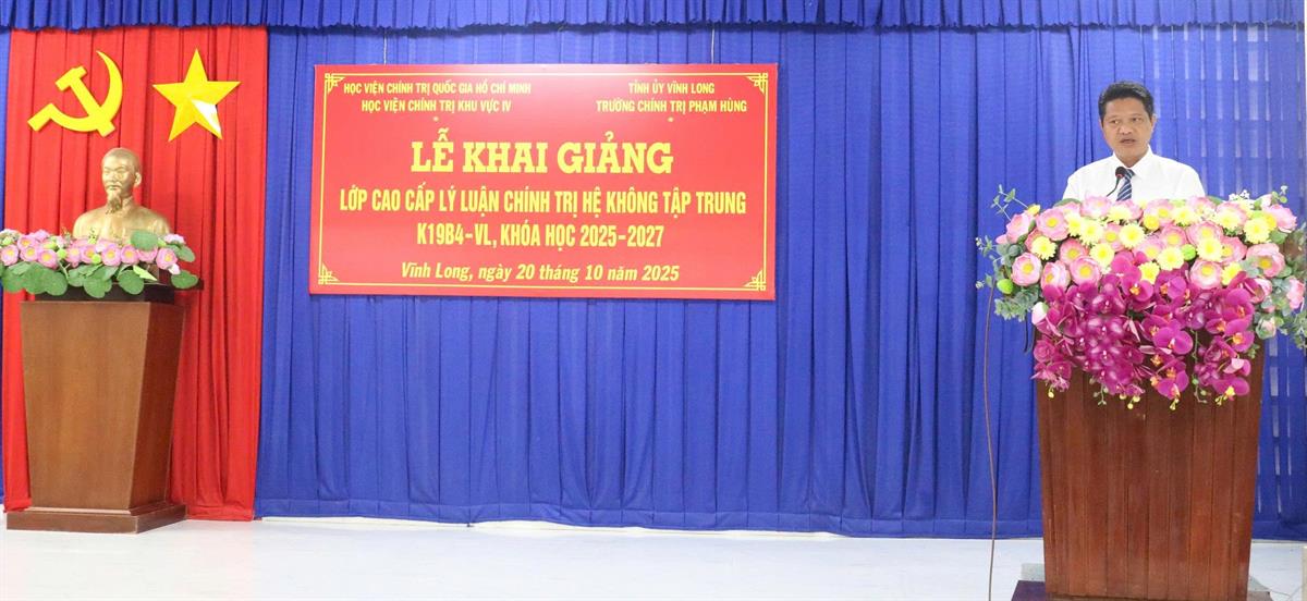 (HCMA4) - Sáng ngày 20/10/2025, tại Trường Chính trị tỉnh Vĩnh Long (Cơ sở 3), Học viện Chính trị khu vực IV long trọng tổ chức Lễ khai giảng Lớp Cao cấp lý luận chính trị hệ không tập trung K19B4-VL, khóa 2025 - 2027