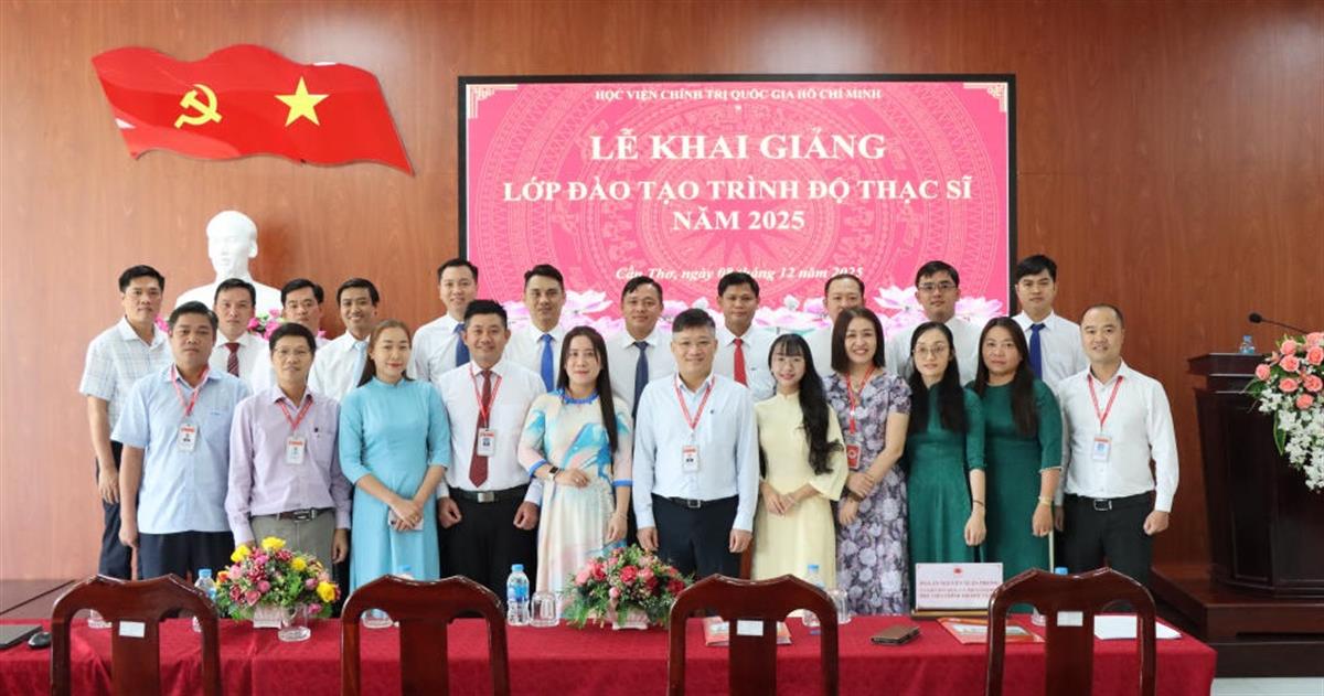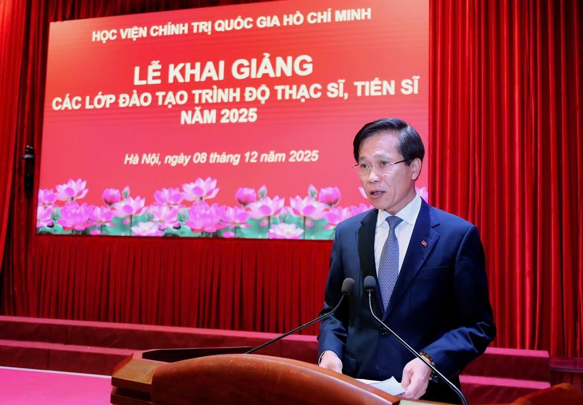 (HCMA) - Sáng ngày 08/12/2025, Học viện Chính trị quốc gia Hồ Chí Minh tổ chức Lễ khai giảng các lớp đào tạo trình độ thạc sĩ, tiến sĩ năm 2025. Lễ khai giảng được kết nối trực tuyến đến Học viện Chính trị khu vực II (tại Thành phố Hồ Chí Minh) và Học viện Chính trị khu vực IV (tại Cần Thơ). PGS,TS Hoàng Phúc Lâm, Phó Bí thư Đảng ủy, Phó Giám đốc Học viện dự và chủ trì buổi lễ.