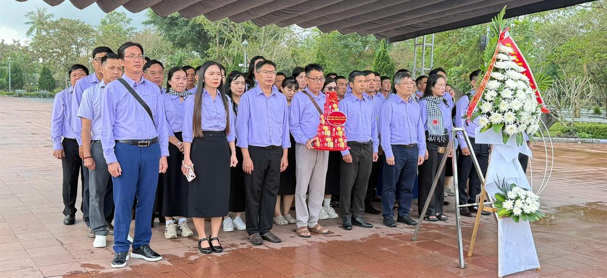 Cũng trong hành trình tại Quảng Trị - mảnh đất giàu truyền thống cách mạng, Đoàn công tác đã đến viếng Thành cổ Quảng Trị, nơi ghi dấu 81 ngày đêm chiến đấu ác liệt, trở thành biểu tượng bất diệt của chủ nghĩa anh hùng cách mạng, của ý chí quật cường và khát vọng độc lập, tự do của dân tộc Việt Nam. Đoàn đã đến viếng phần mộ Đại tướng Võ Nguyên Giáp - vị Tổng Tư lệnh huyền thoại của Quân đội nhân dân Việt Nam, người học trò xuất sắc của Chủ tịch Hồ Chí Minh. Đồng thời, Đoàn cũng thành kính dâng hương tưởng niệm tại Nghĩa trang Liệt sĩ Trường Sơn – nơi an nghỉ của hơn mười nghìn anh hùng liệt sĩ đã hiến dâng tuổi xuân, xương máu cho sự nghiệp giải phóng và thống nhất Tổ quốc.