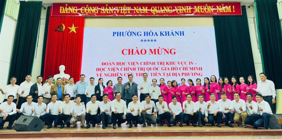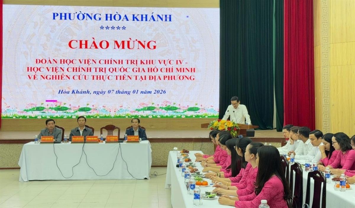 Trong chương trình công tác, Đoàn đã làm việc với UBND phường Hòa Khánh, thành phố Đà Nẵng nhằm tìm hiểu thực tiễn vận hành mô hình chính quyền địa phương hai cấp, công tác bảo đảm an sinh xã hội và giảm nghèo bền vững tại địa phương. Buổi làm việc diễn ra trong không khí nghiêm túc, hiệu quả, cung cấp nhiều thông tin thực tiễn thiết thực cho học viên. Thông qua các báo cáo, trao đổi và thảo luận trực tiếp với lãnh đạo địa phương, học viên có điều kiện tiếp cận những vấn đề thực tiễn đang đặt ra, nhận diện rõ hơn những thuận lợi, khó khăn trong công tác quản lý, điều hành ở cấp cơ sở hiện nay.