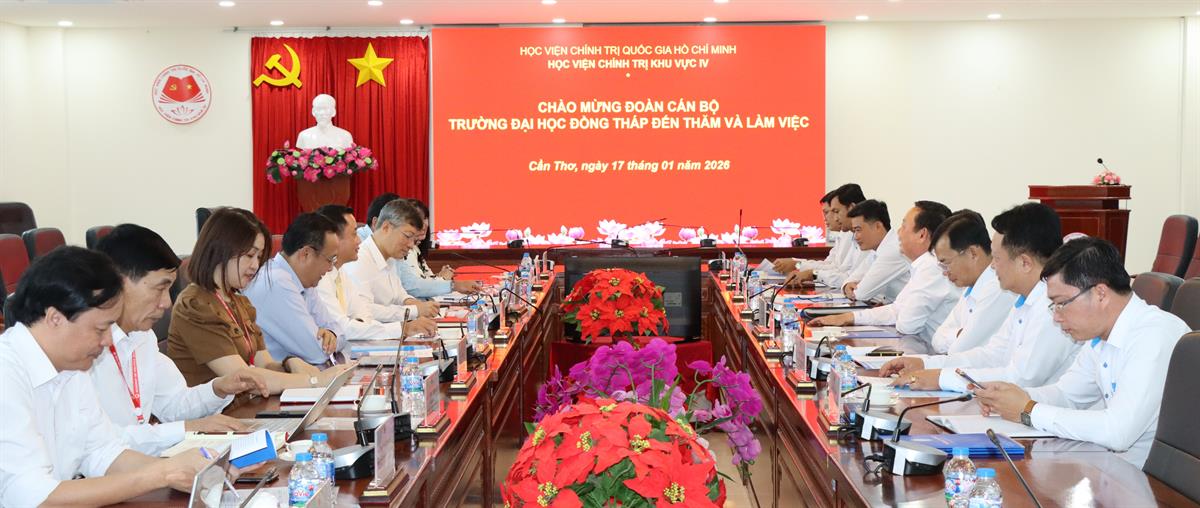 (HCMA4) – Sáng ngày 17/01/2026, tại Thành phố Cần Thơ, Học viện Chính trị khu vực IV đã có buổi làm việc với Trường Đại học Đồng Tháp nhằm trao đổi, thảo luận các nội dung hợp tác giữa hai đơn vị trong thời gian tới.