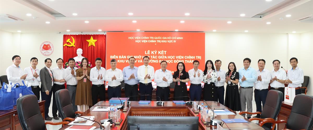 Chủ trì buổi làm việc có PGS, TS. Ngô Tuấn Nghĩa - Bí thư Đảng ủy, Giám đốc Học viện Chính trị khu vực IV và PGS, TS Hồ Văn Thống - Bí thư Đảng ủy, Hiệu trưởng Trường Đại học Đồng Tháp. Tham dự buổi làm việc còn có đại diện lãnh đạo các đơn vị chức năng của hai bên.