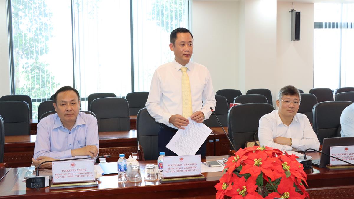 PGS, TS. Ngô Tuấn Nghĩa - Bí thư Đảng ủy, Giám đốc Học viện Chính trị khu vực IV phát biểu tại buổi làm việc