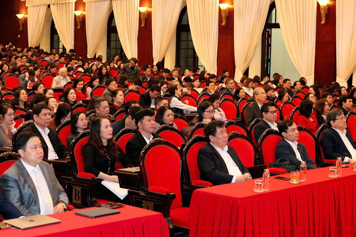 Các đại biểu tại điểm cầu Học viện Chính trị quốc gia Hồ Chí Minh_ảnh: Mạnh Thắng