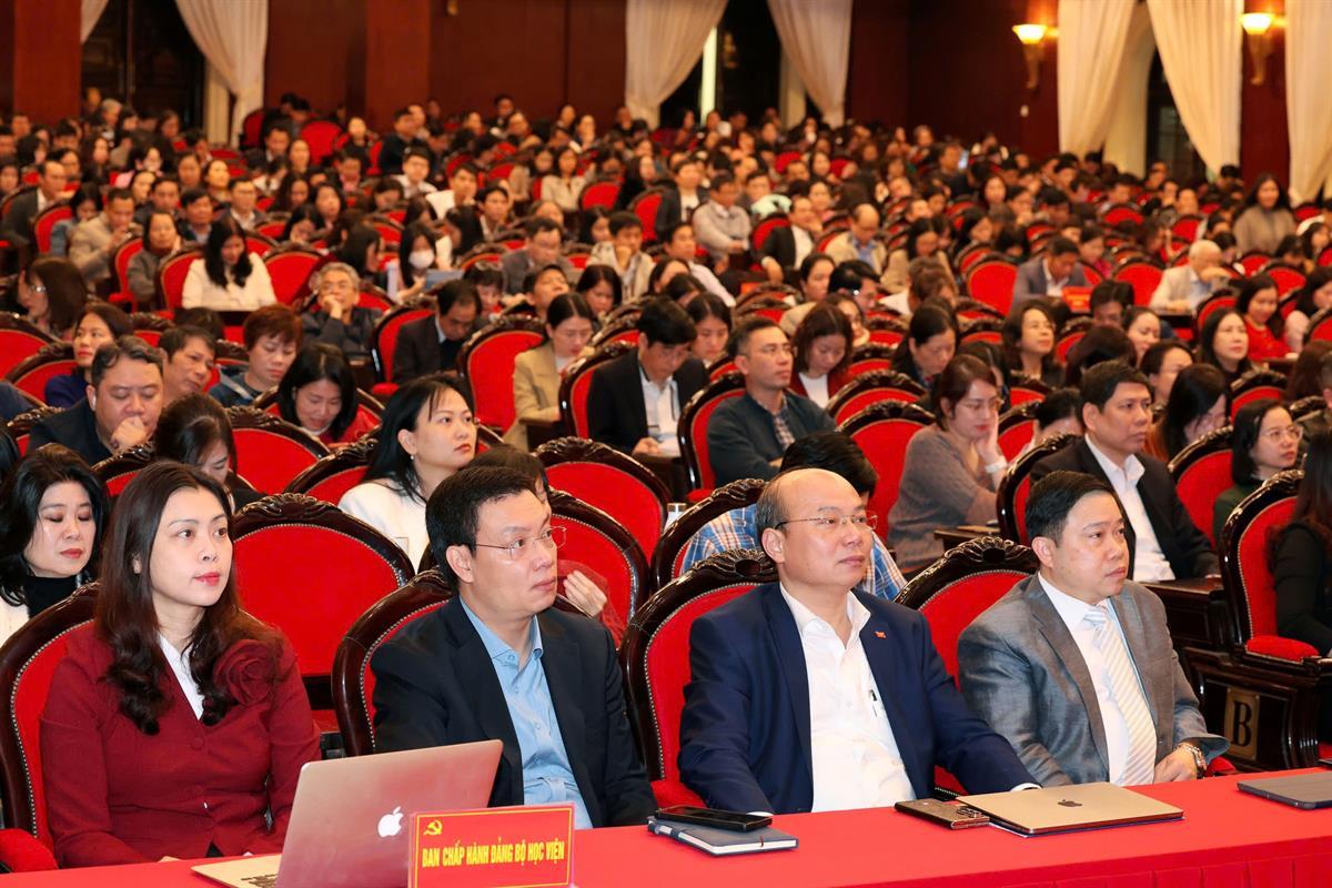 Dự trực tuyến tại điểm cầu Học viện Chính trị quốc gia Hồ Chí Minh có các đồng chí: PGS,TS Nguyễn Duy Bắc, Phó Giám đốc Học viện; PGS,TS Nguyễn Mạnh Hùng, Phó Giám đốc Học viện, Phó Chủ tịch Hội đồng Lý luận Trung ương; đồng chí Trương Công Đắc, Phó Bí thư chuyên trách Đảng ủy Học viện; các đồng chí Ủy viên Ban Thường vụ Đảng ủy, Ủy viên Ban Chấp hành Đảng bộ Học viện; các đồng chí cấp ủy các đảng bộ, chi bộ cơ sở tại Học viện Trung tâm; cùng toàn thể cán bộ, đảng viên, viên chức, người lao động tại Học viện Trung tâm.