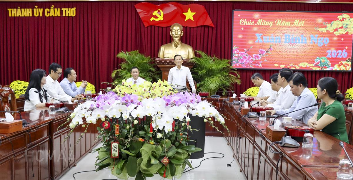 (HCMA4) - Ngày 09/02/2026, Đoàn công tác của Học viện Chính trị khu vực IV đã đến thăm, chúc Tết Thành ủy Cần Thơ nhân dịp Tết Nguyên đán Bính Ngọ 2026.
