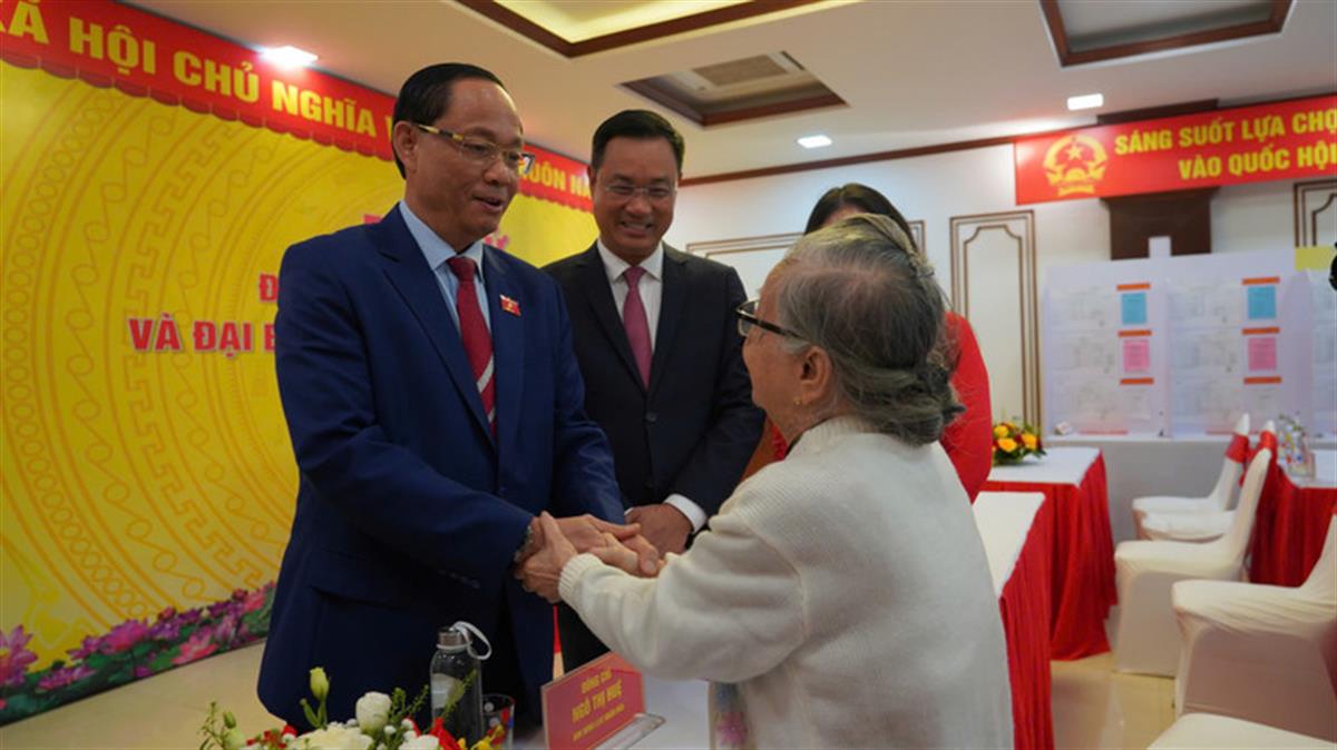 Phó Chủ tịch Quốc hội Trần Quang Phương thăm hỏi cử tri cao tuổi tại Tổ bầu cử 15, thuộc ban Ban bầu cử số 4, phường Hải Châu, Đà Nẵng. (Ảnh PHAN HẢI TÙNG LÂM )