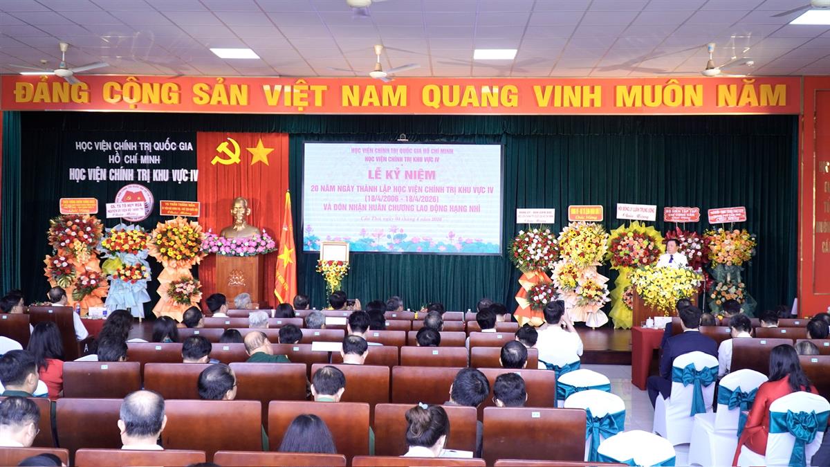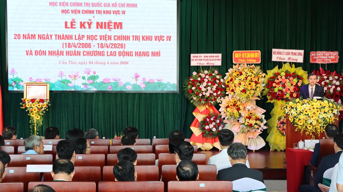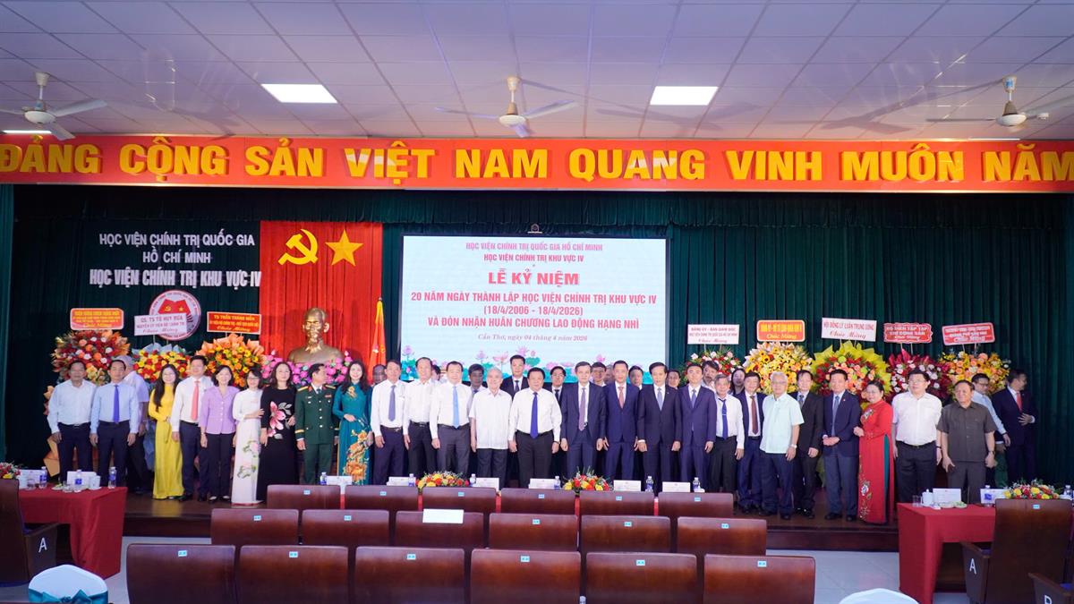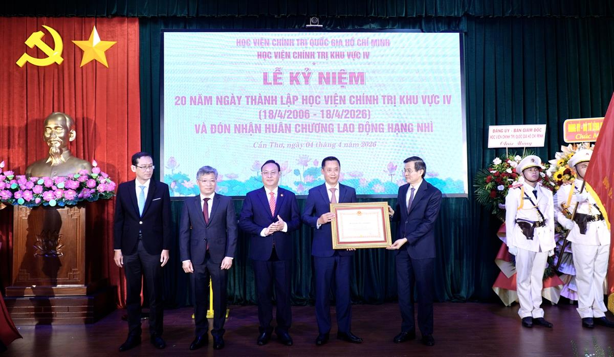 (HCMA4) - Sáng ngày 04/4/2026, tại thành phố Cần Thơ, Học viện Chính trị khu vực IV long trọng tổ chức Lễ kỷ niệm 20 năm thành lập (18/4/2006 - 18/4/2026) và đón nhận Huân chương Lao động hạng Nhì. Đây là dấu mốc có ý nghĩa đặc biệt, ghi nhận chặng đường xây dựng và phát triển, đồng thời khẳng định vai trò của Học viện trong công tác đào tạo, bồi dưỡng cán bộ và nghiên cứu lý luận chính trị tại vùng đồng bằng sông Cửu Long.