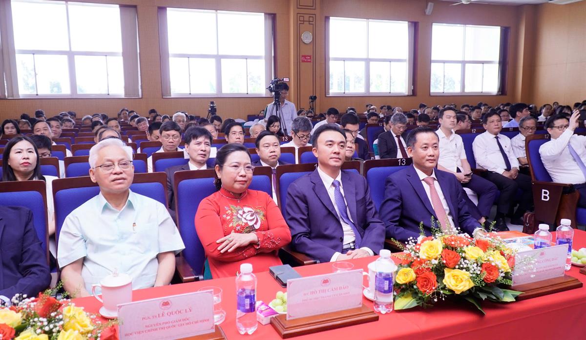 Tham dự buổi lễ có: PGS, TS. Đoàn Minh Huấn, Ủy viên Bộ Chính trị, Bí thư Đảng ủy, Giám đốc Học viện Chính trị quốc gia Hồ Chí Minh; GS, TS. Nguyễn Xuân Thắng, Ủy viên Bộ Chính trị khóa XIII, Chủ tịch Hội đồng Lý luận Trung ương; cùng các đồng chí lãnh đạo, nguyên lãnh đạo Đảng, Nhà nước; lãnh đạo các ban, bộ, ngành Trung ương; PGS, TS. Hoàng Phúc Lâm, Phó Bí thư Đảng ủy, Phó Giám đốc Học viện Chính trị quốc gia Hồ Chí Minh; TS. Trương Công Đắc, Phó Bí thư chuyên trách Đảng ủy Học viện Chính trị quốc gia Hồ Chí Minh; các đồng chí Nguyên Phó Giám đốc Học viện Chính trị quốc gia Hồ Chí Minh; lãnh đạo các Vụ, Viện, các Học viện trực thuộc của Học viện Chính trị quốc gia Hồ Chí Minh; lãnh đạo các tỉnh, thành phố vùng đồng bằng sông Cửu Long: đồng chí Đồng Văn Thanh, Ủy viên Ban chấp hành Trung ương Đảng, Phó Bí thư thường trực Thành ủy Cần Thơ; đồng chí Nguyễn Tấn Quyên, Nguyên Ủy viên Ban chấp hành Trung ương Đảng, Nguyên Bí thư Thành ủy Cần Thơ; đồng chí Nguyễn Minh Dũng, Ủy viên dự khuyết Ban chấp hành Trung ương Đảng, Phó Bí thư Tỉnh ủy Vĩnh Long; đồng chí Hồ Cẩm Đào, Phó Bí thư Thành ủy Cần Thơ; đồng chí Hồ Thanh Thủy, Phó Bí thư Tỉnh ủy Cà Mau; đồng chí Nguyễn Văn Khởi, Thành ủy viên, Phó Chủ tịch Ủy ban nhân dân thành phố Cần Thơ; đồng chí Nguyễn Thị Minh Thúy, Tỉnh ủy viên, Phó Chủ tịch Ủy ban nhân dân tỉnh An Giang; Đại tá Mai Văn Hòa, Phó Chủ nhiệm Quân khu 9; đại diện các cơ quan thông tấn, báo chí ở Trung ương và địa phương; các thế hệ cán bộ, viên chức và học viên của Học viện qua các thời kỳ.