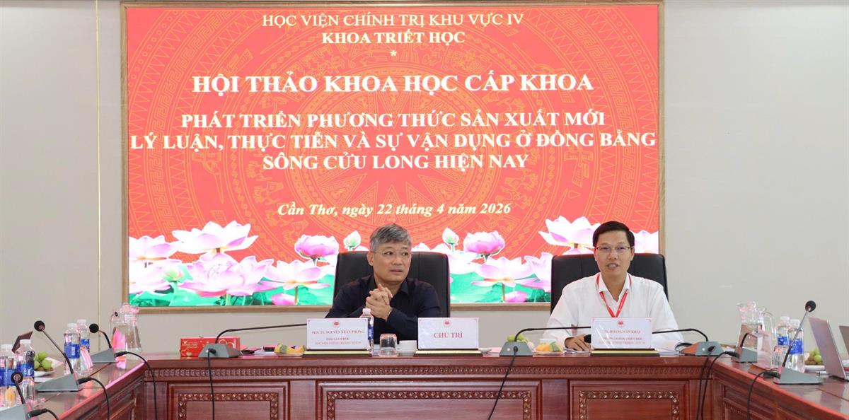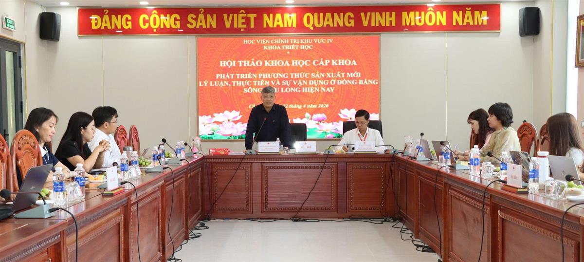 (HCMA4) - Chiều ngày 22/4/2026, tại Học viện Chính trị khu vực IV, Khoa Triết học tổ chức Hội thảo khoa học với chủ đề “Phát triển phương thức sản xuất mới - Lý luận, thực tiễn và sự vận dụng ở đồng bằng sông Cửu Long hiện nay”.